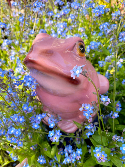 'Croak' Baby Pink Ceramic Frog Statue