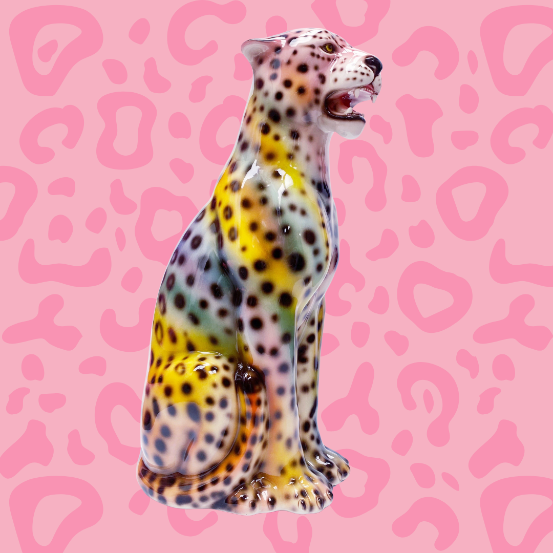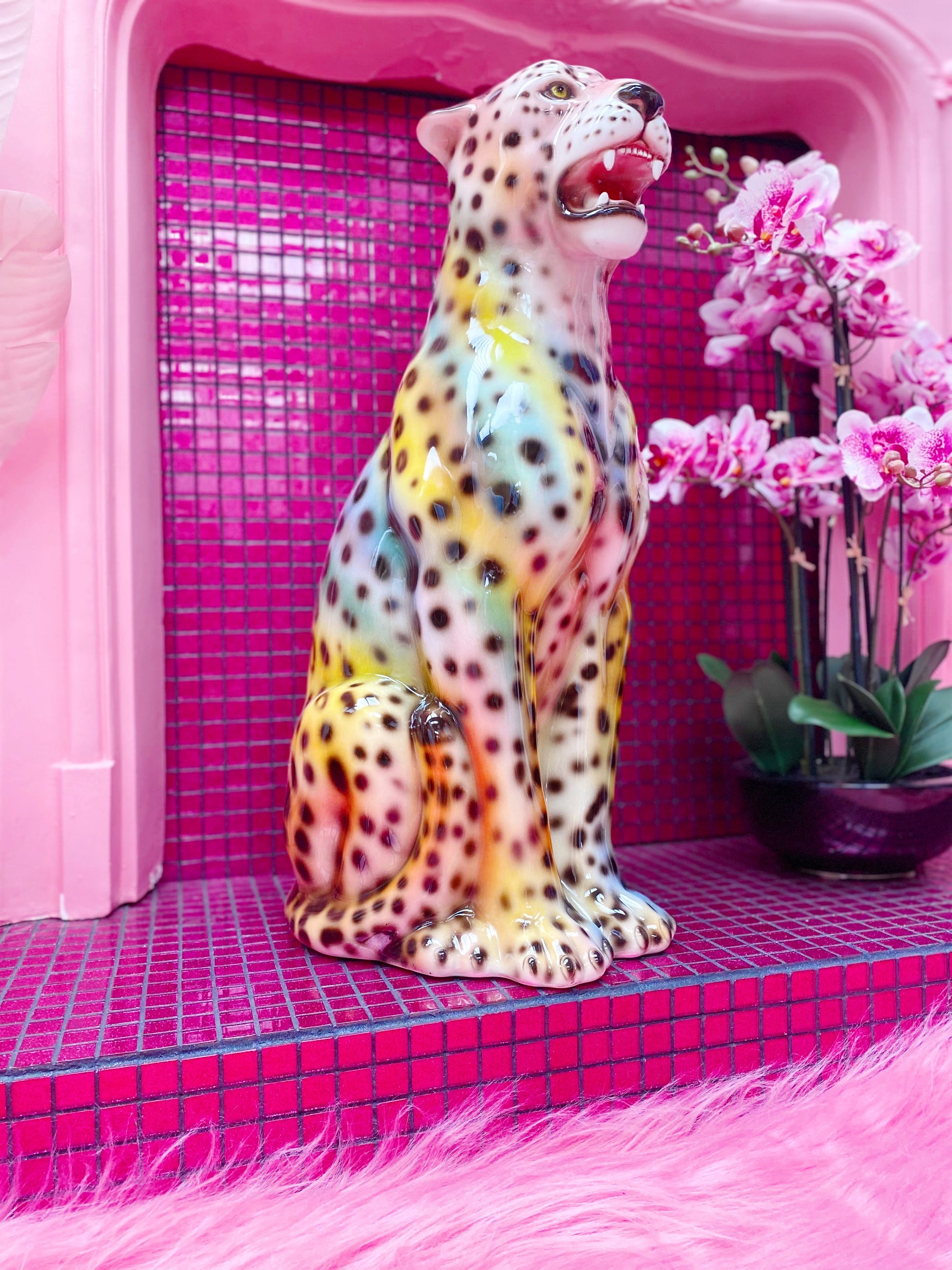 'Aurora' RAINBOW Large Ceramic Leopard Statue