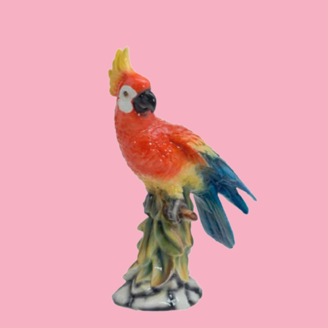 'Kiwi' Red Ceramic Cockatoo Statue Vintage