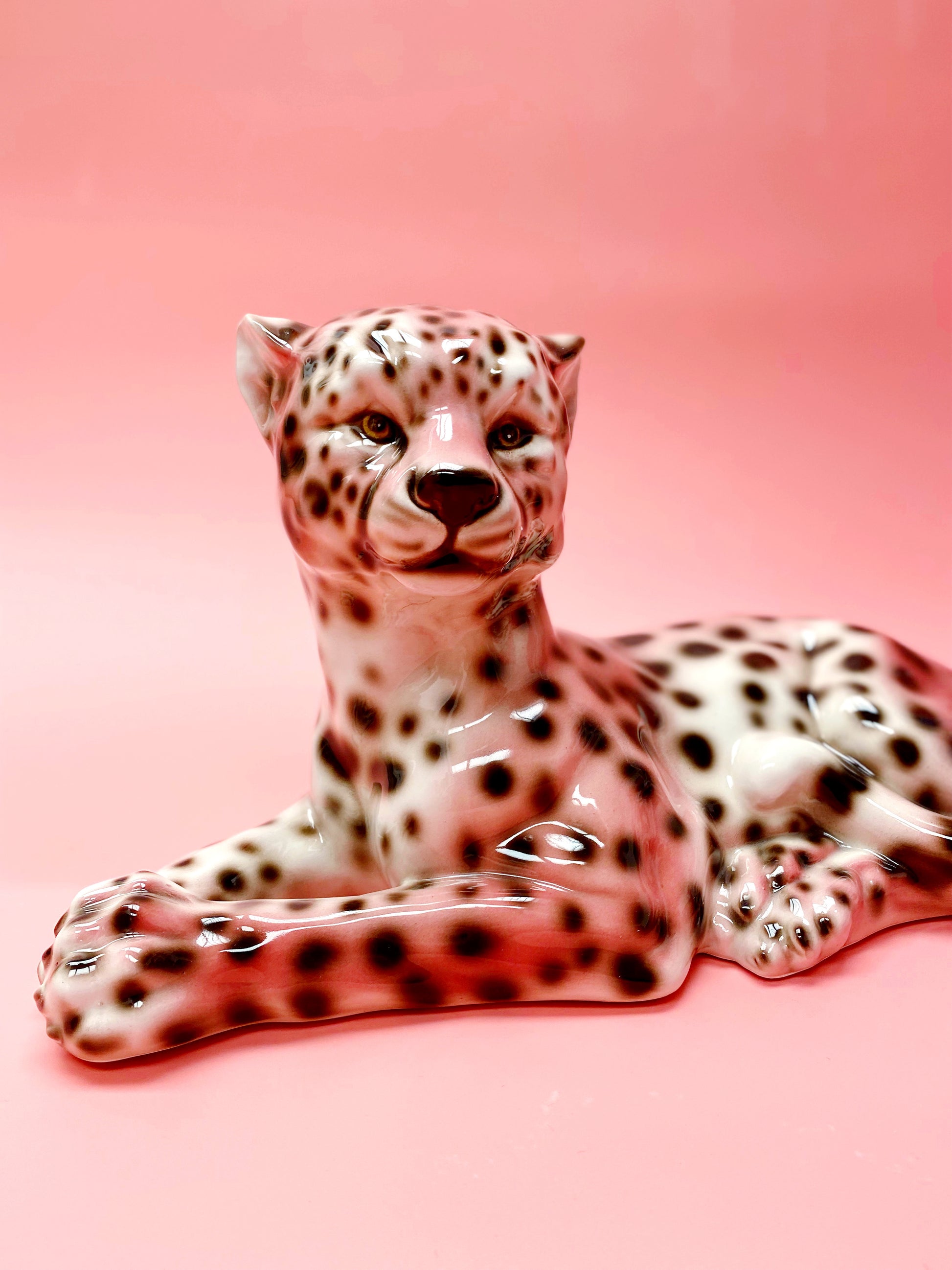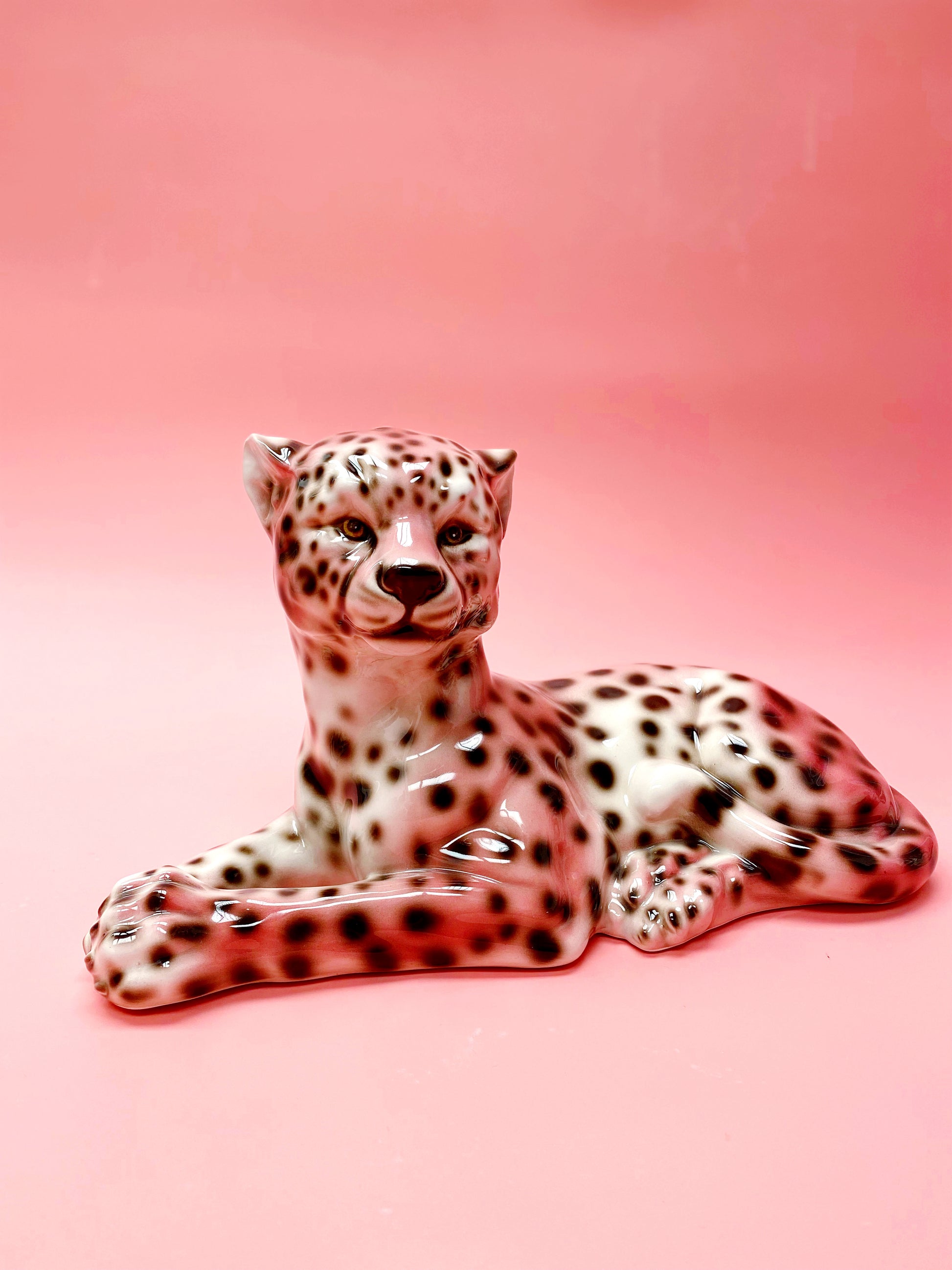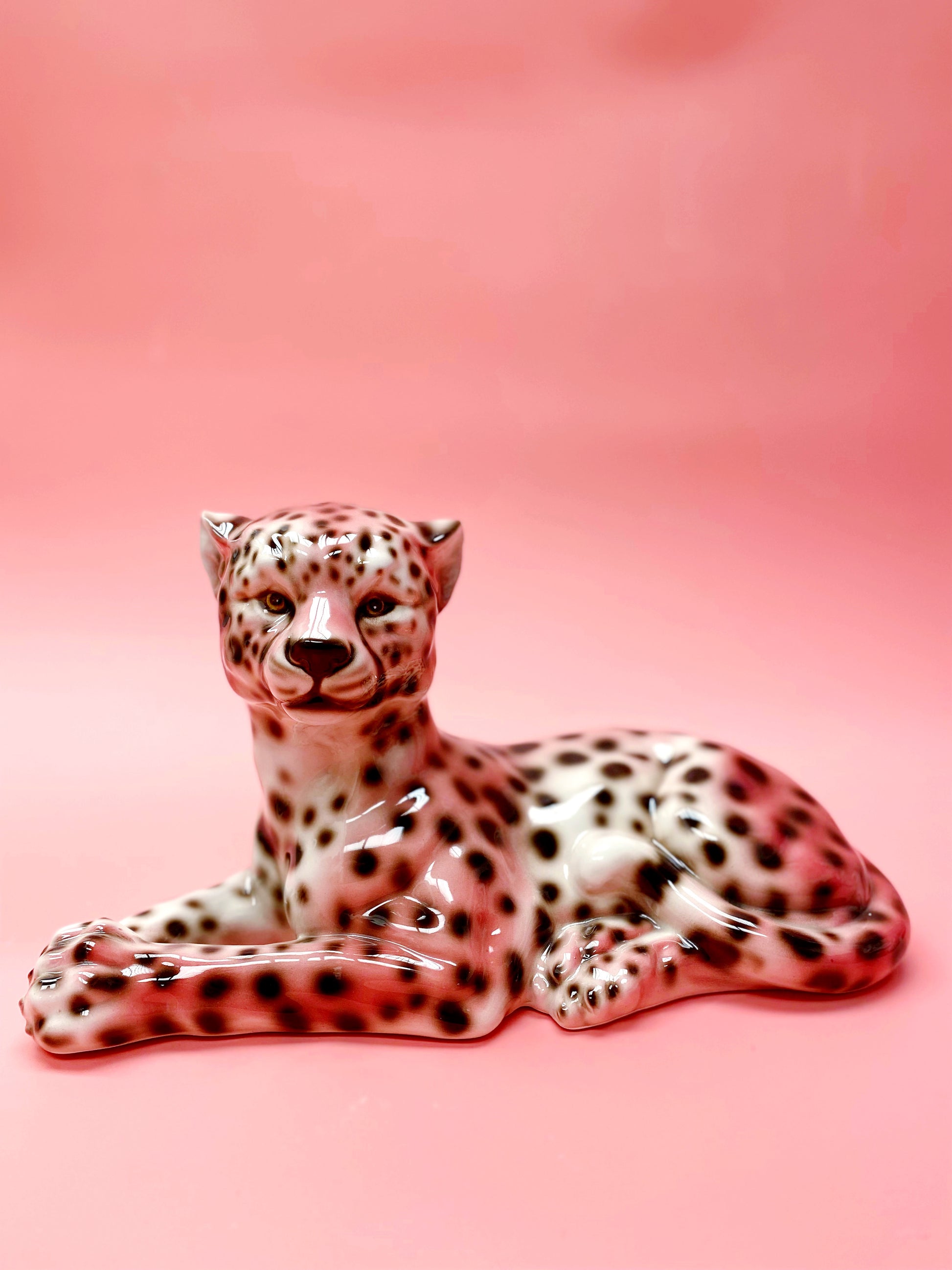 'Sloane' Laying PINK Ceramic Leopard Statue