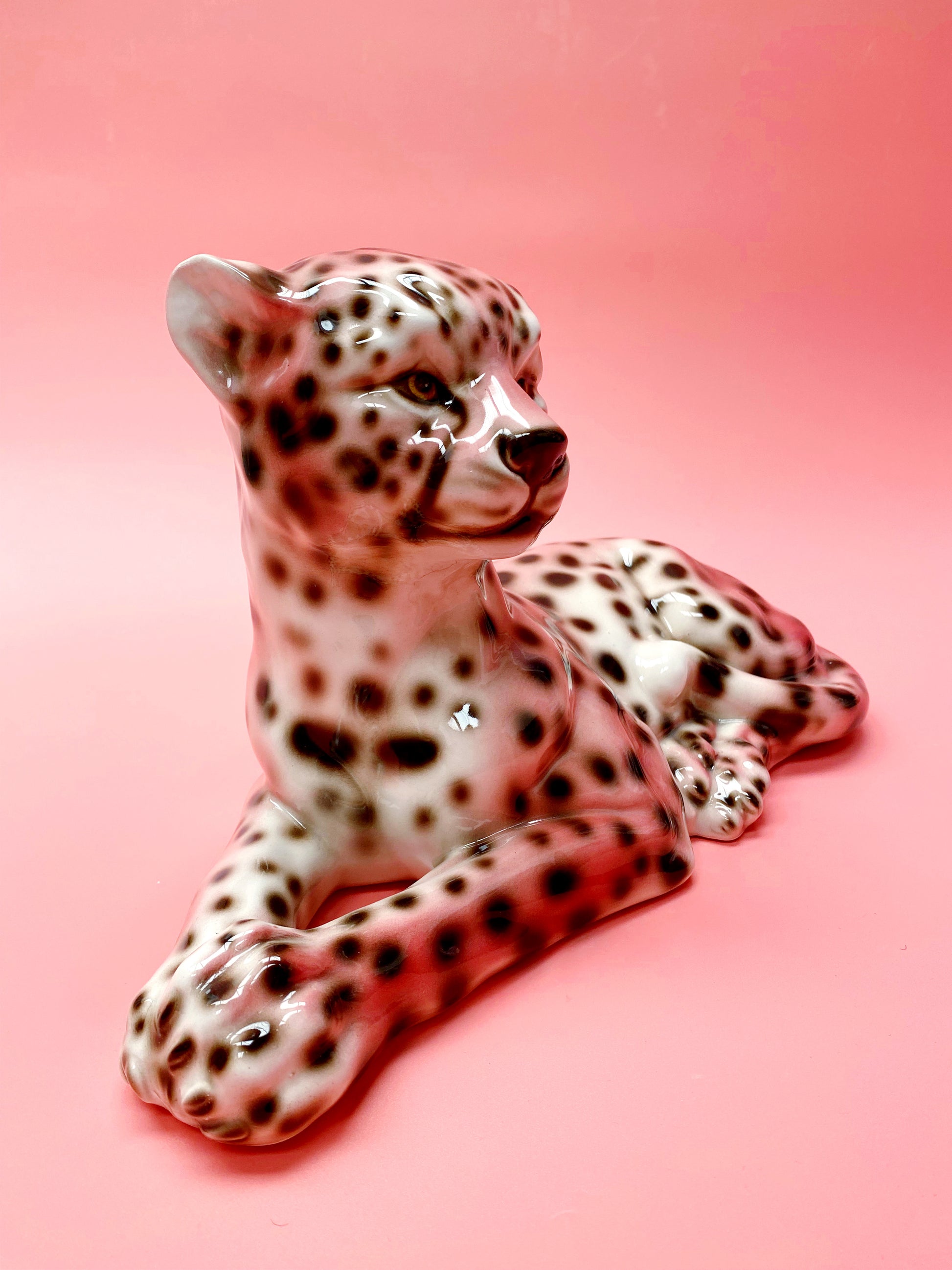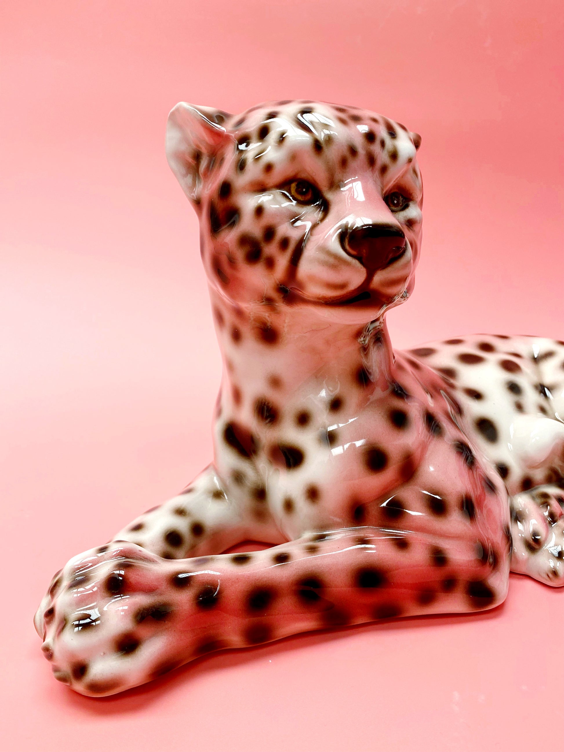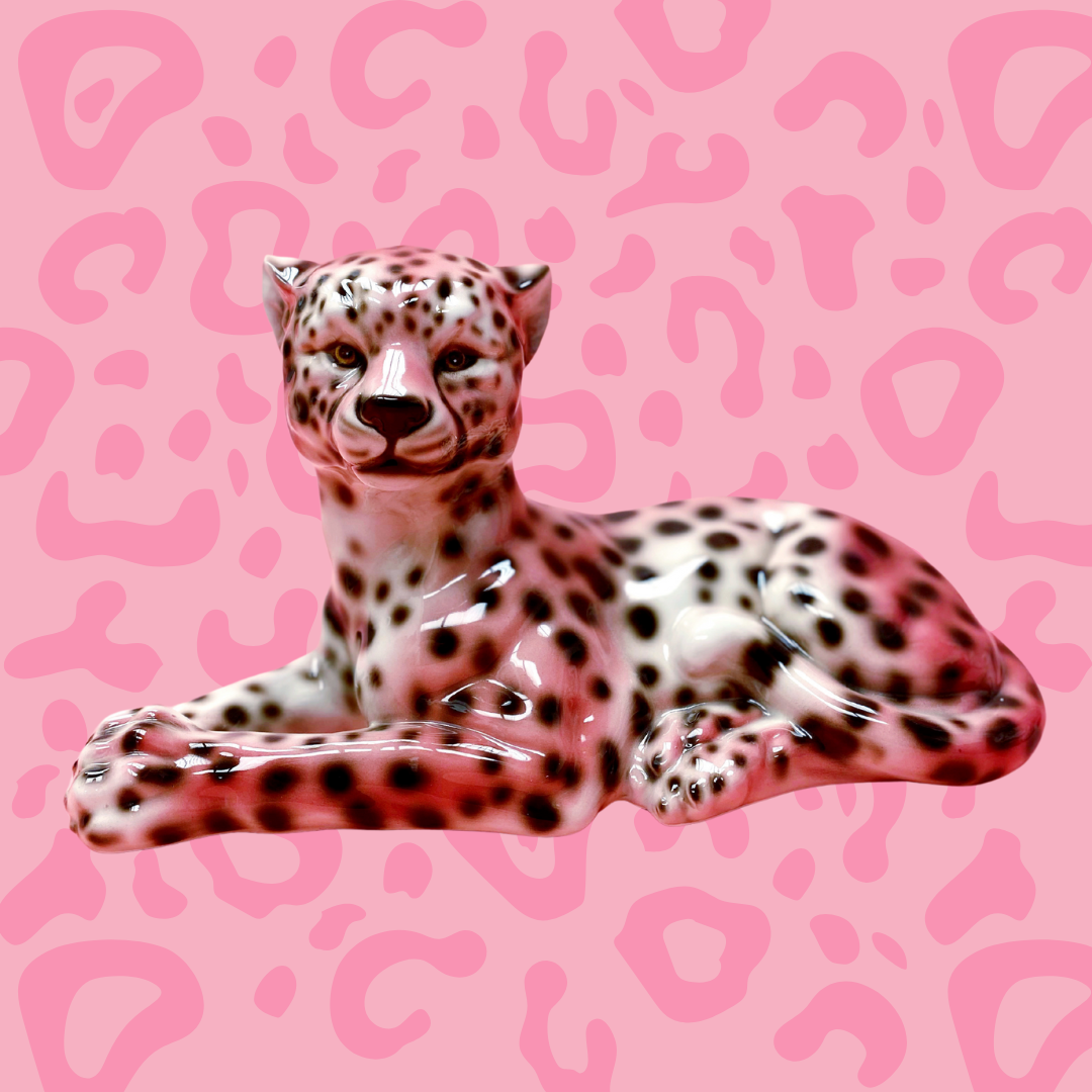 'Sloane' Laying PINK Ceramic Leopard Statue
