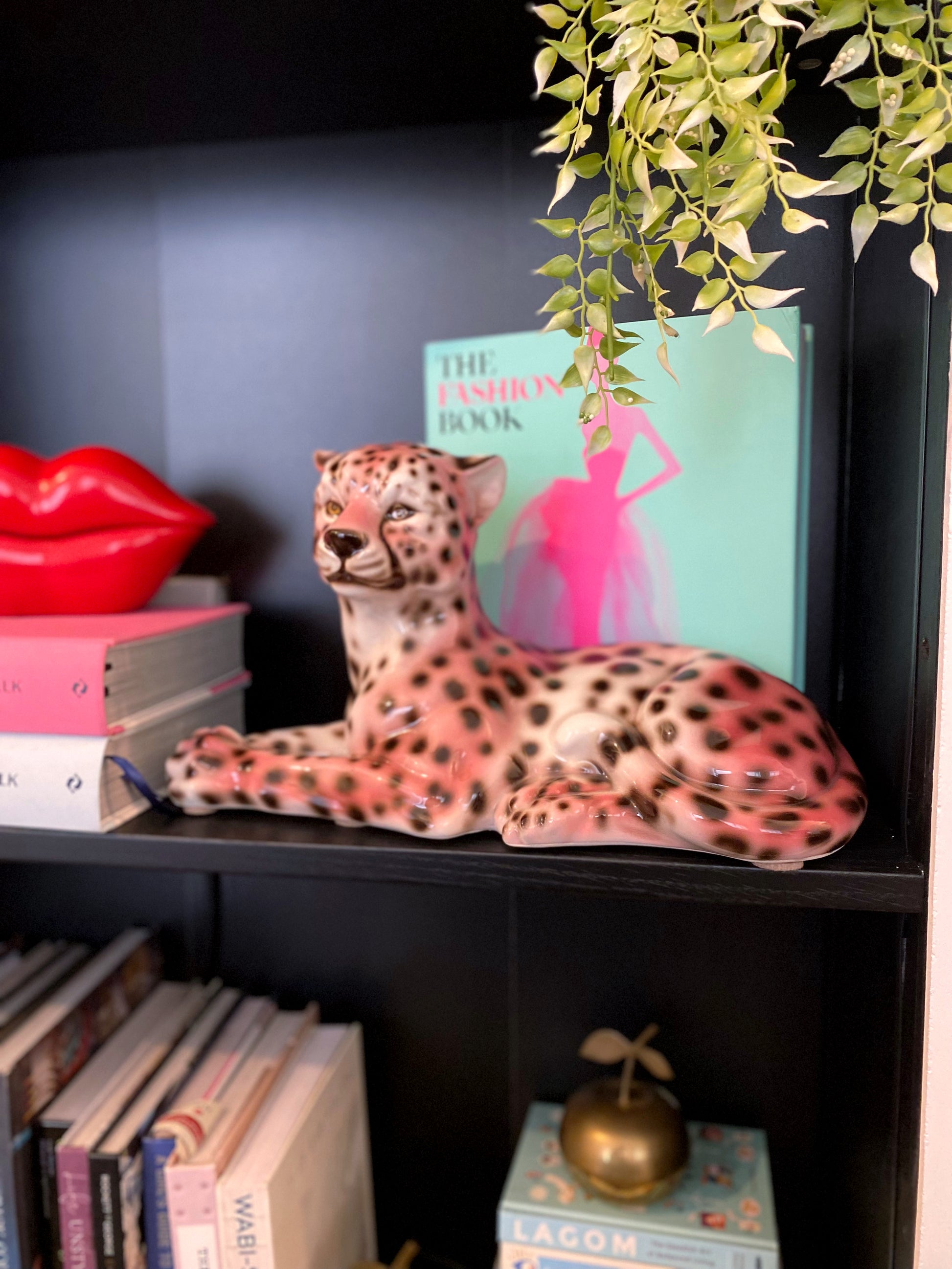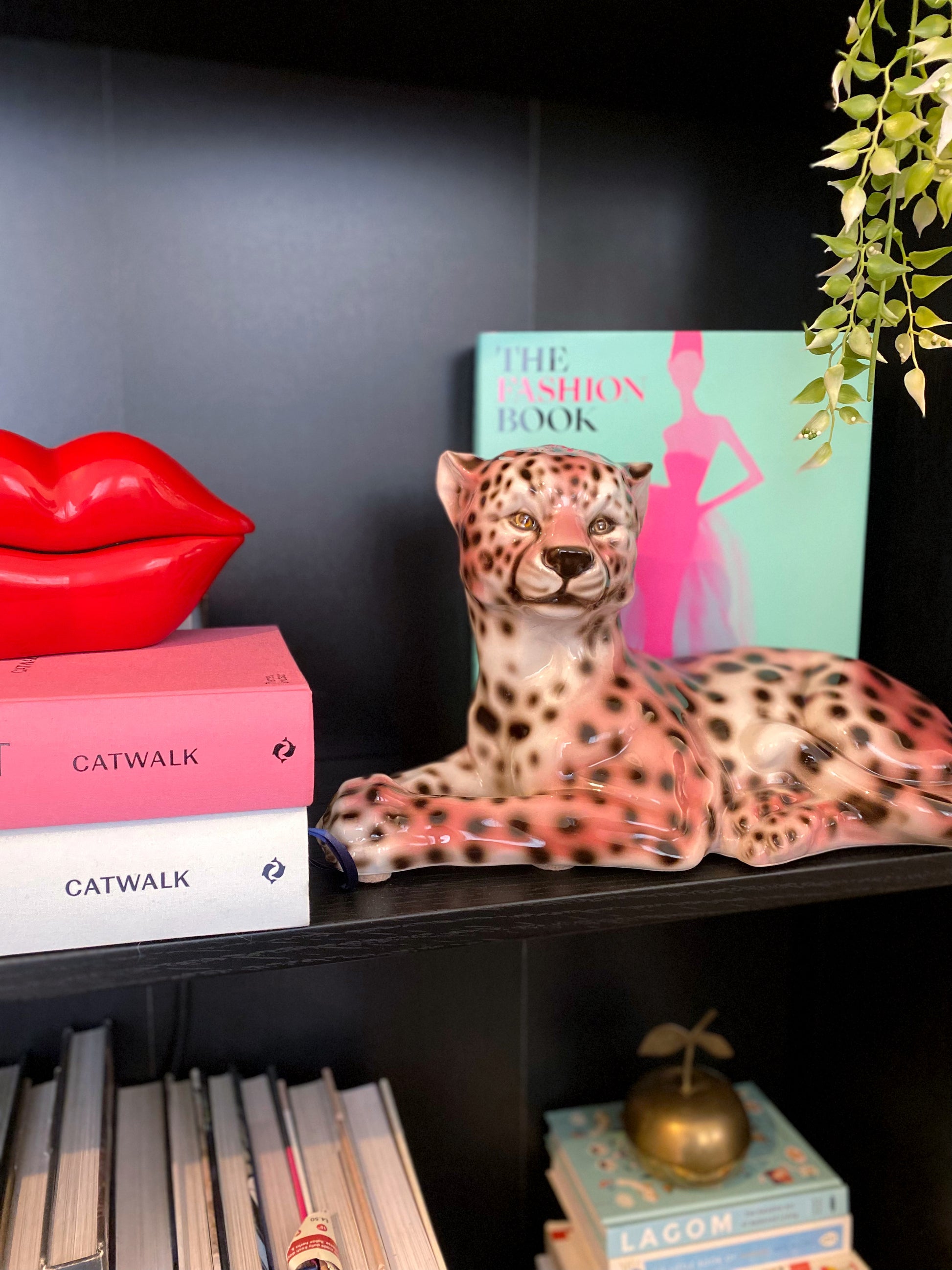 Sloane is our reclining ceramic leopard statue perfect for sitting on top of shelves or sideboards.