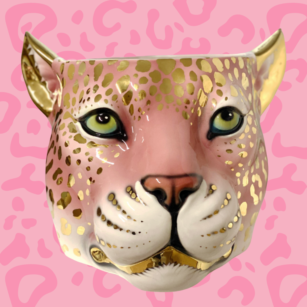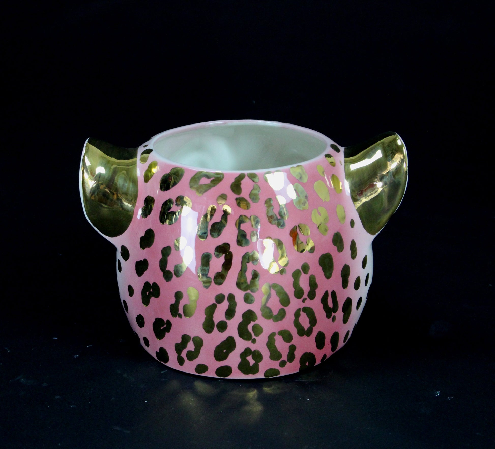Twinkle is a limited edition pink & 24k gold plated version of our Medium leopard planter!