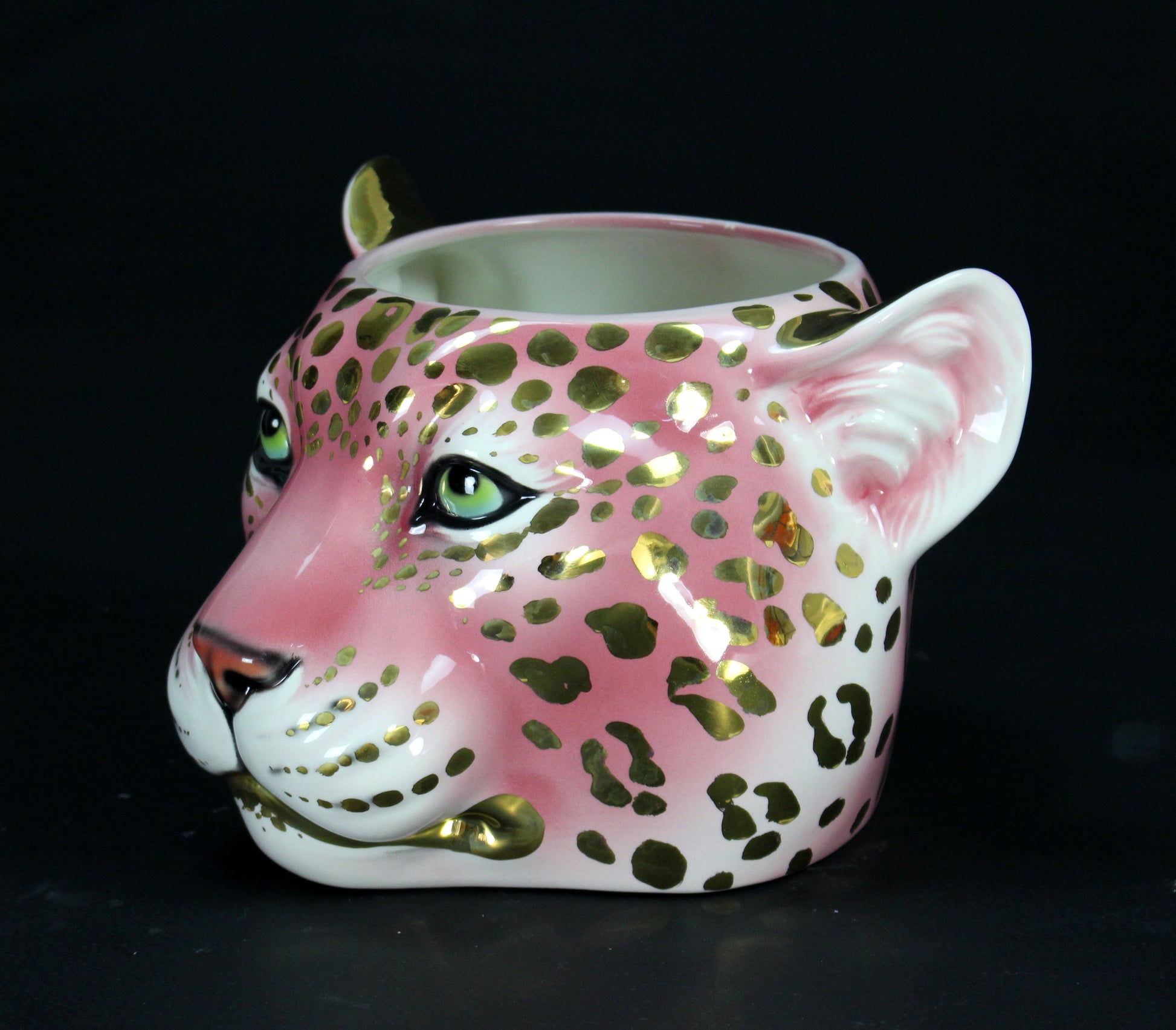 'Twinkle' Limited Edition Pink & 24k Gold XL Ceramic Leopard Planter