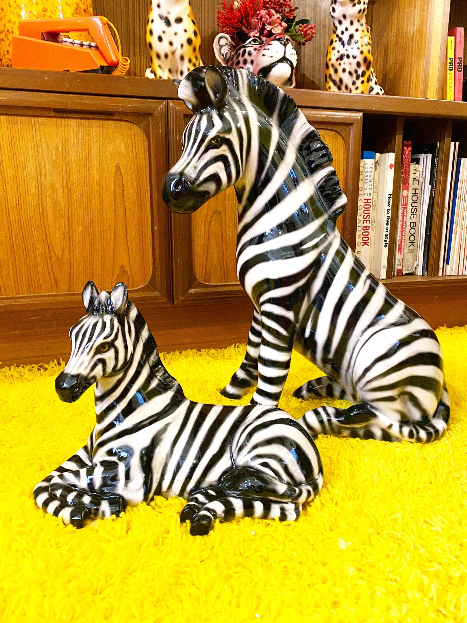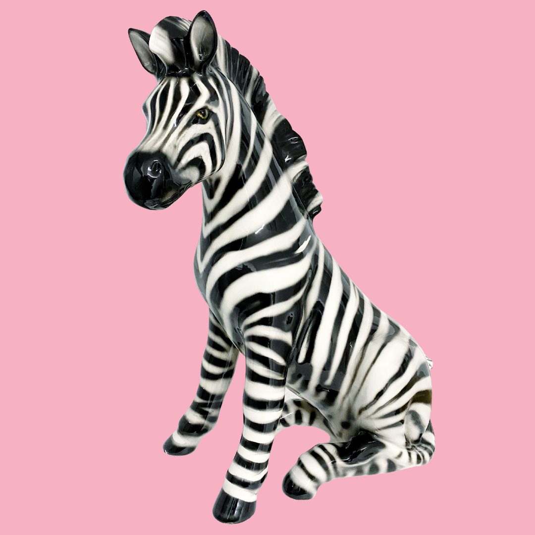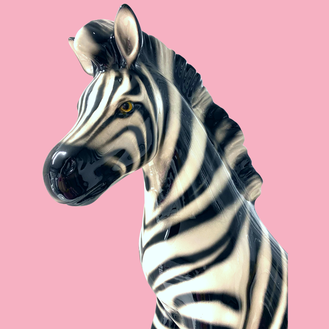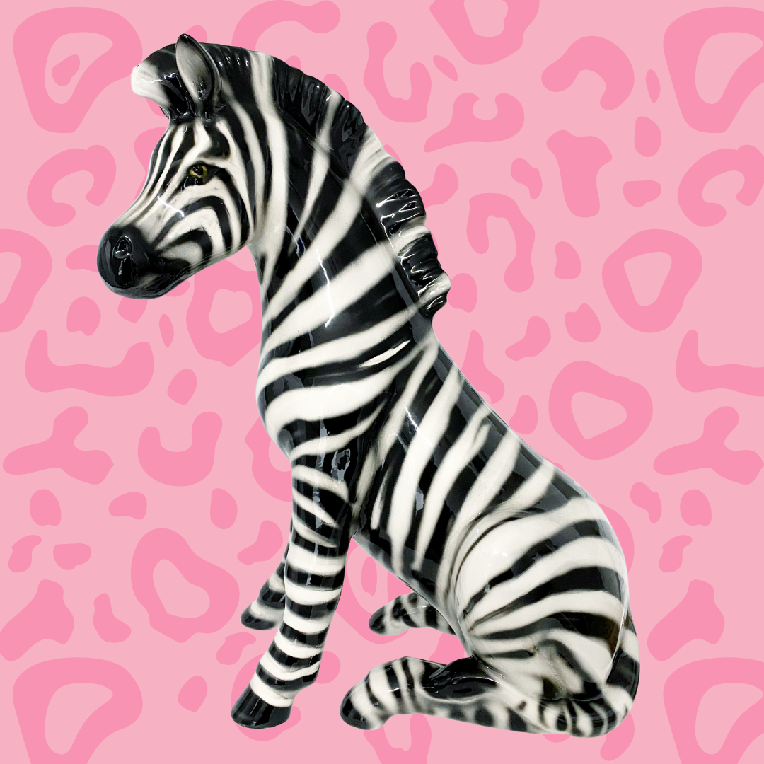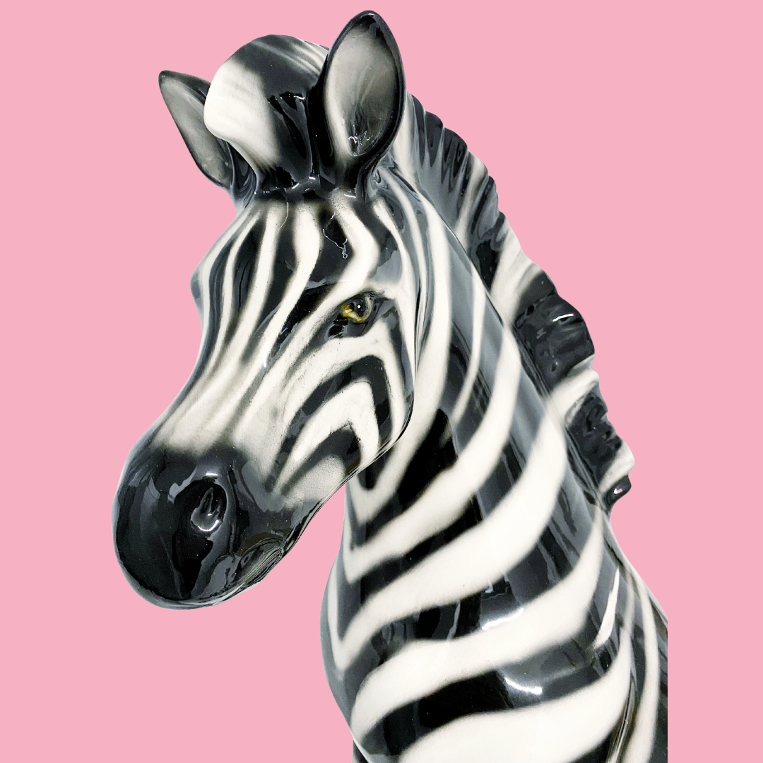 'Zaza' Large Ceramic Zebra Statue Vintage